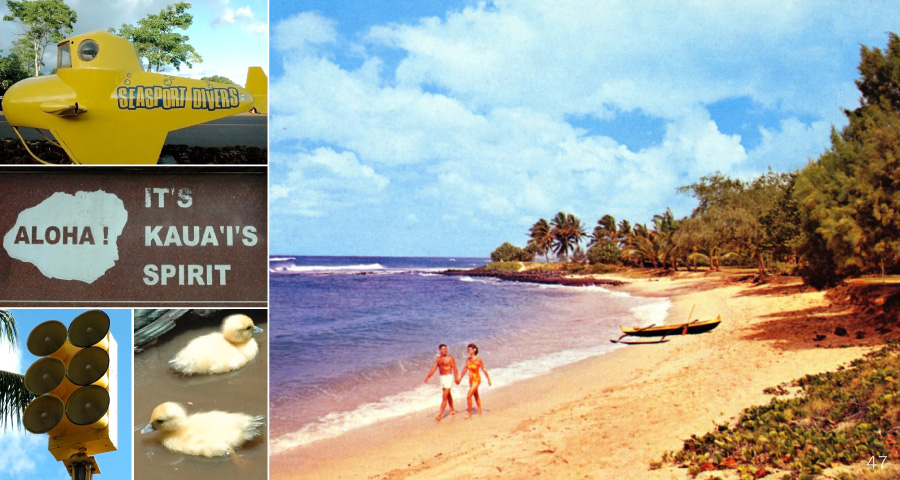 After Koloa, stay on Poipu Road to reach the popular beach area of Poipu (crashing waves) on the southernmost point of the Garden Isle. With a dry climate and plenty of sunshine, Poipu has become a center of tourism on the island and is home to many luxury hotels. |